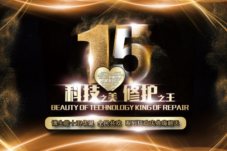值此博生能15周年之际,广州雅盈投资管理有限公司博生能品牌针对广大博生能忠实用户、加盟店、代理商以及全体员工,全面启动“修护之王博生能15华诞”系列丰富多彩的庆祝活动,我们热切的欢迎大家踊跃的参与!
