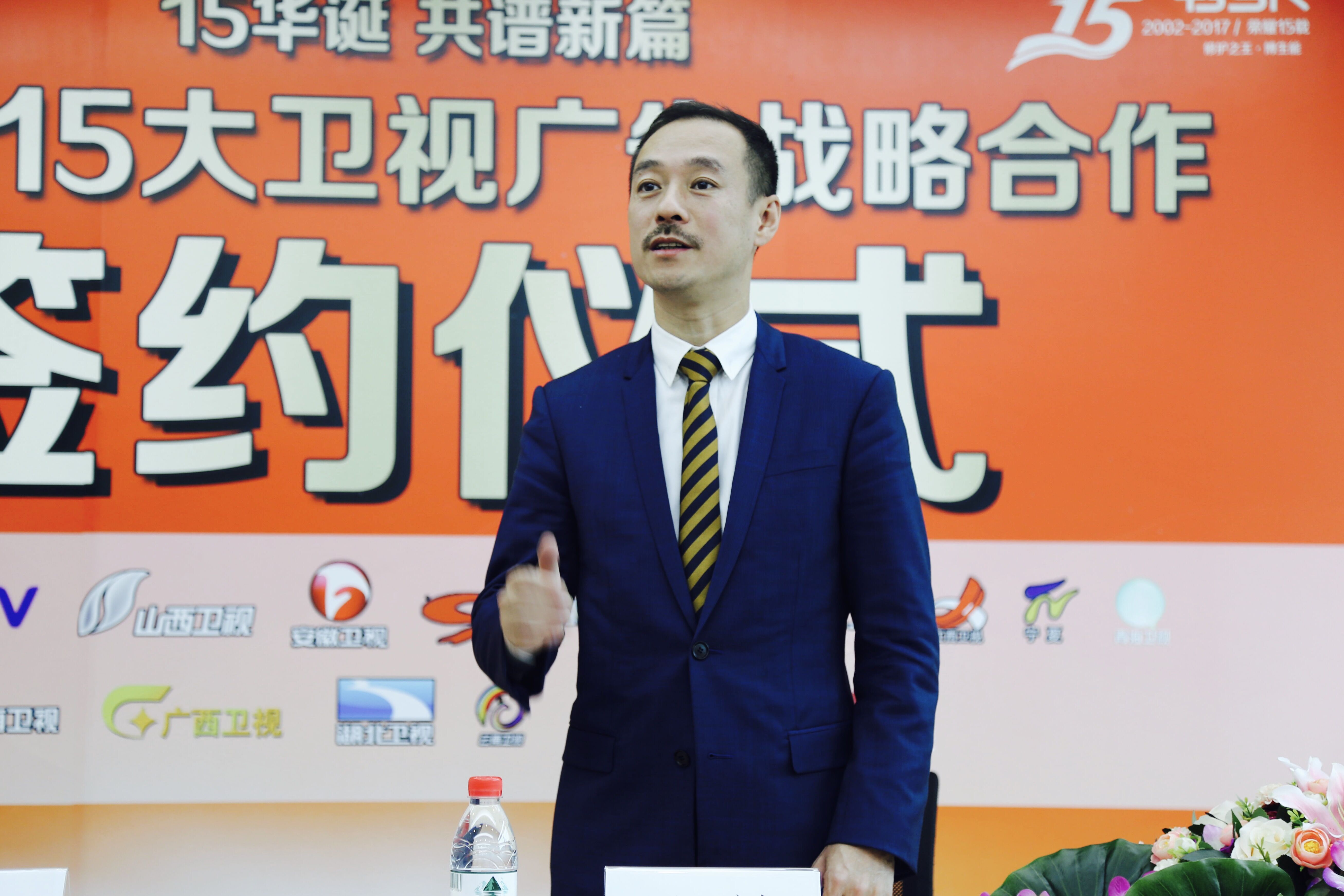 广州雅盈投资管理有限公司董事总经理王斌先生,代表博生能品牌与15大卫视签署广告战略合作协议。
