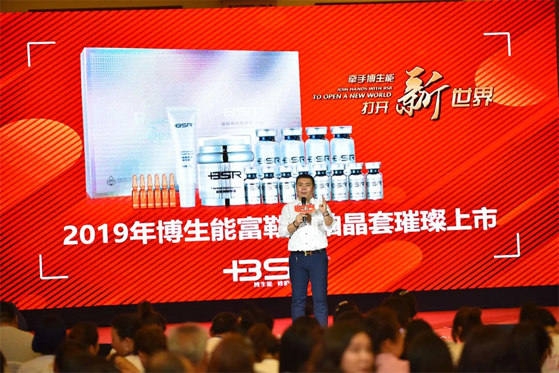 博生能品牌总经理张贺鸣先生在会议现场为大家发布了博生能2019业绩盈利系统,深入浅出地为大家一一梳理了美容院的经营思路,现场发起博生能首届海外代购节,以2019最新上市的富勒烯铂晶套装为出口剖析,让利美容院,让利终端!