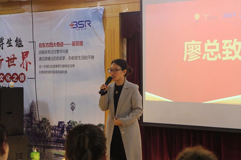 照片为雅盈公司副总经理廖华女士为富勒烯新品发布致辞